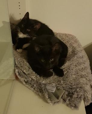 На одном сайте мы увидели двух котят – один был чёрным и глянцевым, а другой был чёрный, но с белой шёрсткой на животе и на подбородке, а ещё у него были белые усы и брови. И мы решили их взять. Нам написали, что мы можем забрать их на следующий день, то есть на Рождество.